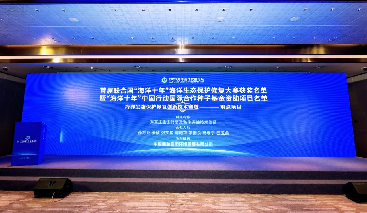 近日,中國船舶集團環境發展有限公司(以下簡稱“中船環境”)自主研發的《海草床生態修復及監測評估技術體系》項目,在首屆聯合國“海洋十年”海洋生態保護修復大賽中脫穎而出,榮獲“海洋十年”中國行動國際合作種子基金資助重點項目。中船環境也是唯一獨立自主完成海洋生態保護修復創新技術項目的企業代表。