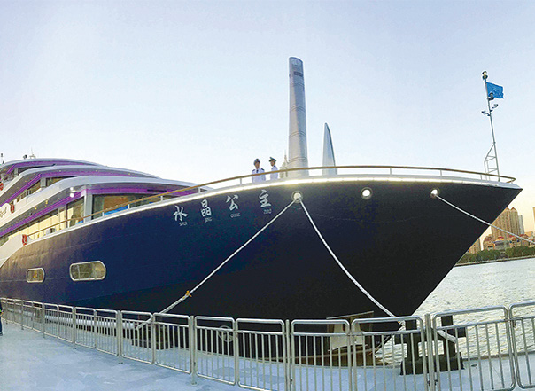 ????近日,七〇二所為上海強生集團有限公司設計的休閑餐飲觀景船“水晶公主號”停靠黃浦江與游客見面。