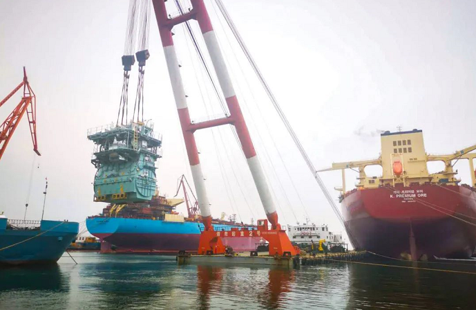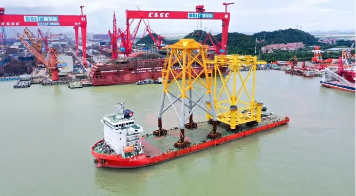 日前,由中國船舶集團(tuán)旗下廣船國際承建的廣東陽江南鵬島300兆瓦海上風(fēng)電項(xiàng)目首套導(dǎo)管架及輔助平臺順利交運(yùn)。這是廣船國際承建并交運(yùn)的首批首個(gè)風(fēng)電導(dǎo)管架,也是目前國內(nèi)最大的風(fēng)電導(dǎo)管架,標(biāo)志著廣船國際在風(fēng)電業(yè)務(wù)領(lǐng)域?qū)崿F(xiàn)了經(jīng)營、生產(chǎn)、交付全環(huán)節(jié)突破,對后續(xù)承接風(fēng)電項(xiàng)目業(yè)務(wù)、拓展風(fēng)電市場具有重要意義。
