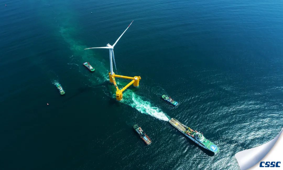 中國(guó)海裝建造的國(guó)內(nèi)首臺(tái)深遠(yuǎn)海浮式風(fēng)電裝備——“扶搖號(hào)”從廣東茂名廣港碼頭正式起航。
