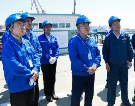 王國強深入船塢、碼頭、試驗現(xiàn)場等科研生產(chǎn)一線,察看了相關產(chǎn)品、重點建設項目,與一線員工就工作、生活情況親切交流,并聽取了相關單位發(fā)展情況、科技創(chuàng)新、安全生產(chǎn)等情況匯報。