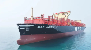“MSC 朱麗葉”號安裝脫硫塔并預留液化天然氣(LNG)動力功能,采用全新理念的環保減碳減阻設計,滿足最新的環保排放標準,是一款綠色環保、高效節能的大型集裝箱船。