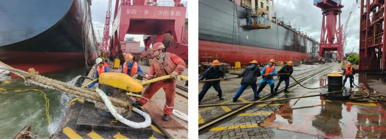 第一時間啟動防臺應急預案,成立專項應急指揮小組,周密部署防臺責任分工、隱患排查、物資儲備、應急值守等工作。組織各生產部門對廠區重點區域開展安全隱患拉網式排查,加固碼頭系泊設備、龍門吊等大型機械,轉移露天物資;對船塢、堆場、臨時工棚等區域進行防風防水處理,暫停高空作業;檢查配電設施防水情況,疏通廠區排水管網,配備應急抽水泵,確保安全度過臺風期。嚴格執行24小時領導帶班和值班制度,實施應急搶險隊伍全員待命,并加強與當地應急管理等部門的溝通聯動,實時跟蹤臺風路徑,動態調整臺風應對方案。臺風過境后,立即開展了災后檢查,評估設備設施受損狀況,在確保安全的前提下有序恢復生產。