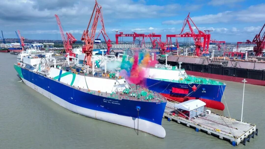 10月17日,中國船舶集團有限公司旗下滬東中華為卡塔爾能源項目建造的17.4萬立方米液化天然氣(LNG)運輸船“米赫澤姆”號和“東沙尼”號同日命名。這標志該公司深入貫徹落實中船集團“沖刺四季度”工作取得重要成果,在一周內完成2船交付、2船命名、3船出塢、3船入塢,交出LNG運輸船產能倍增優異答卷。