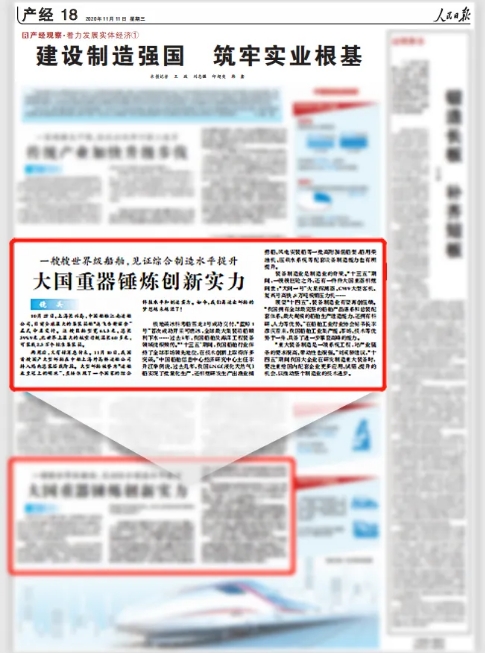 今天,人民日?qǐng)?bào)產(chǎn)經(jīng)專版在《產(chǎn)經(jīng)觀察·著力發(fā)展實(shí)體經(jīng)濟(jì)》第一期報(bào)道《建設(shè)制造強(qiáng)國(guó)筑牢實(shí)業(yè)根基》中將鏡頭對(duì)準(zhǔn)了中國(guó)船舶集團(tuán)。