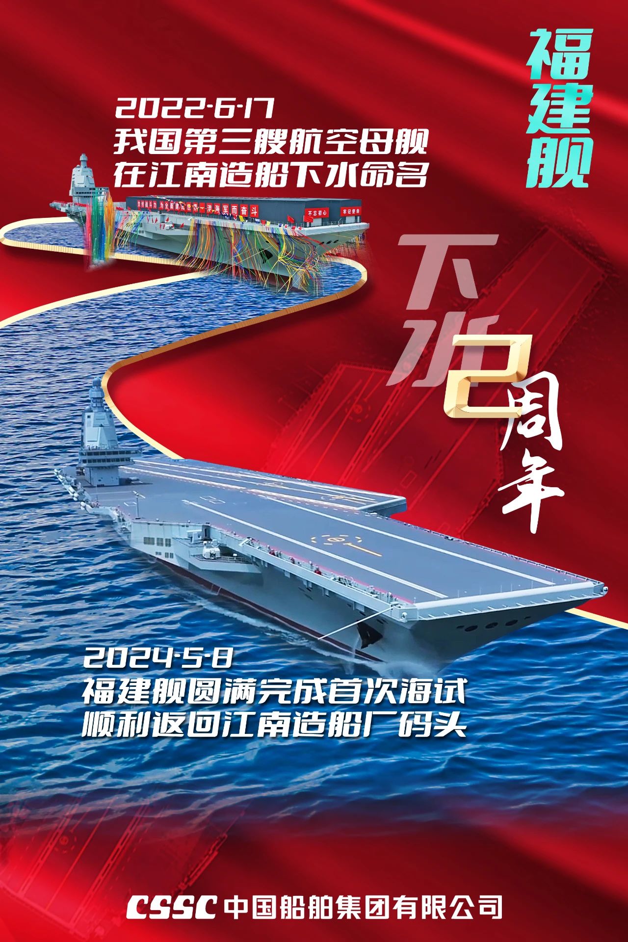 福建艦下水2周年