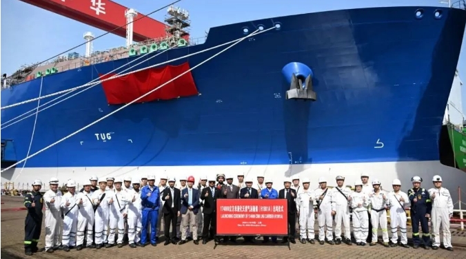 17.4萬立方米LNG運輸船“遠(yuǎn)海奮進”號(Ocean Inspiration)在滬東中華新廠區(qū)正式命名。